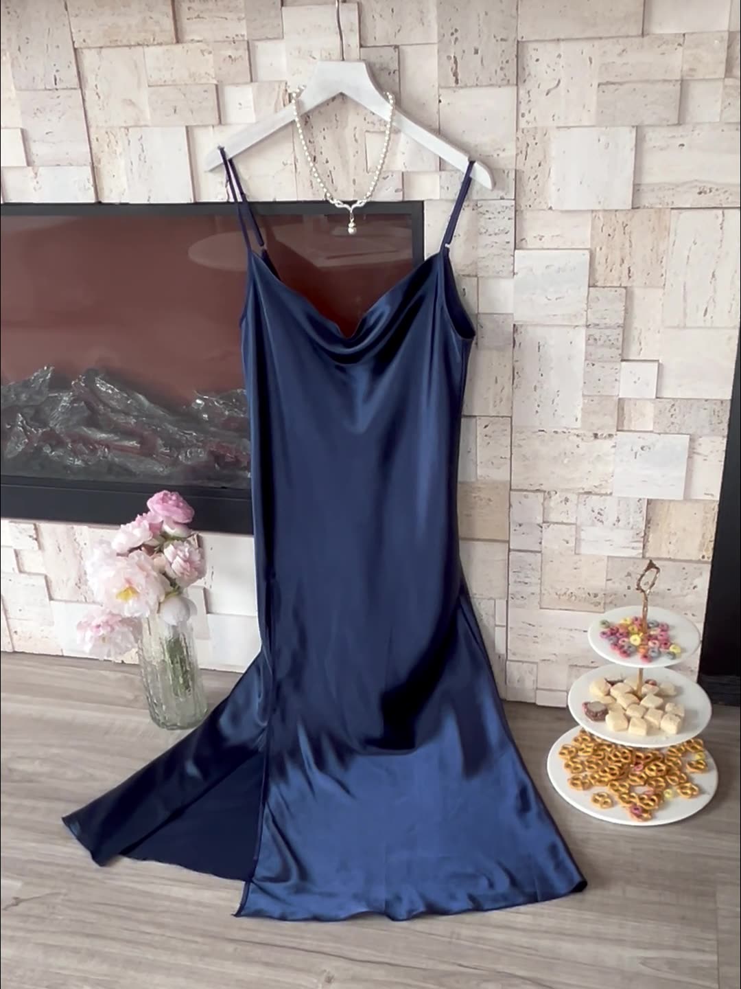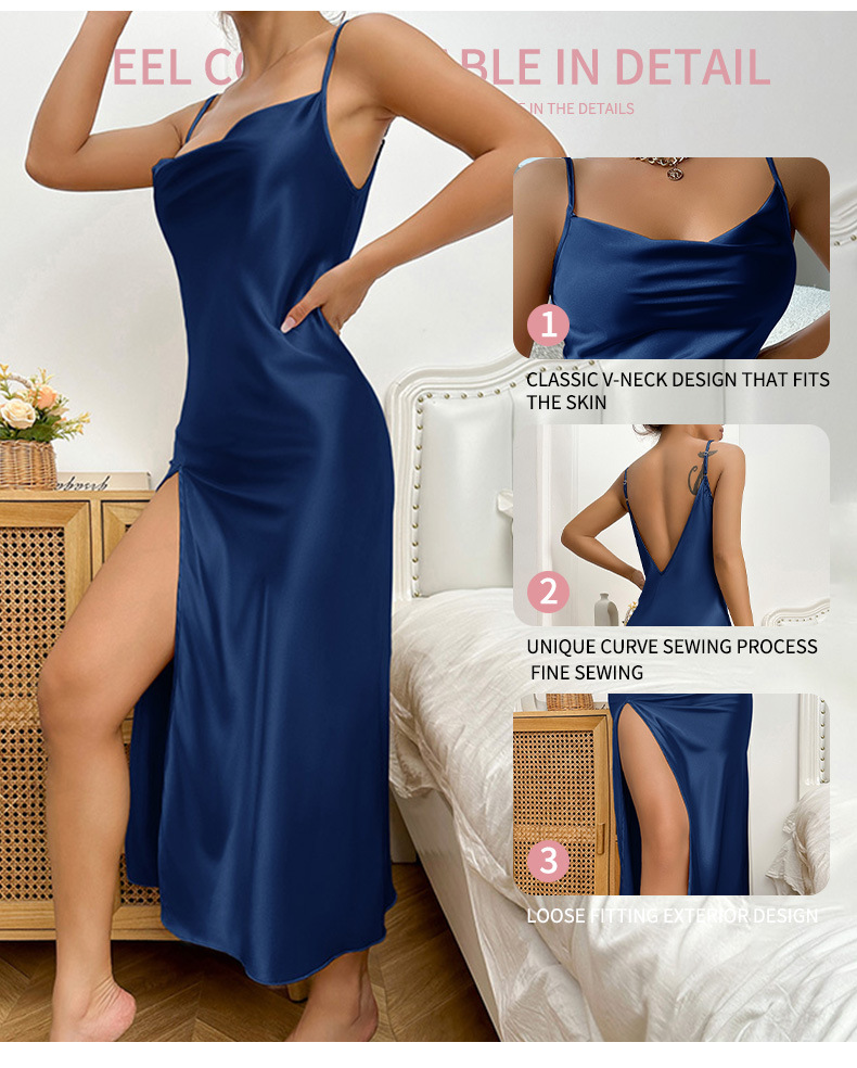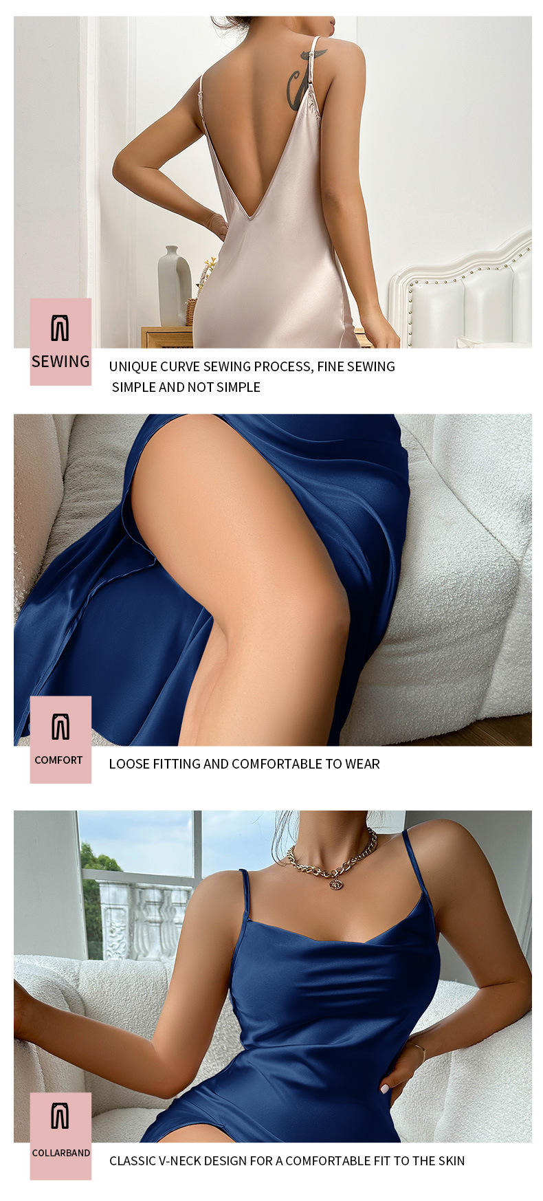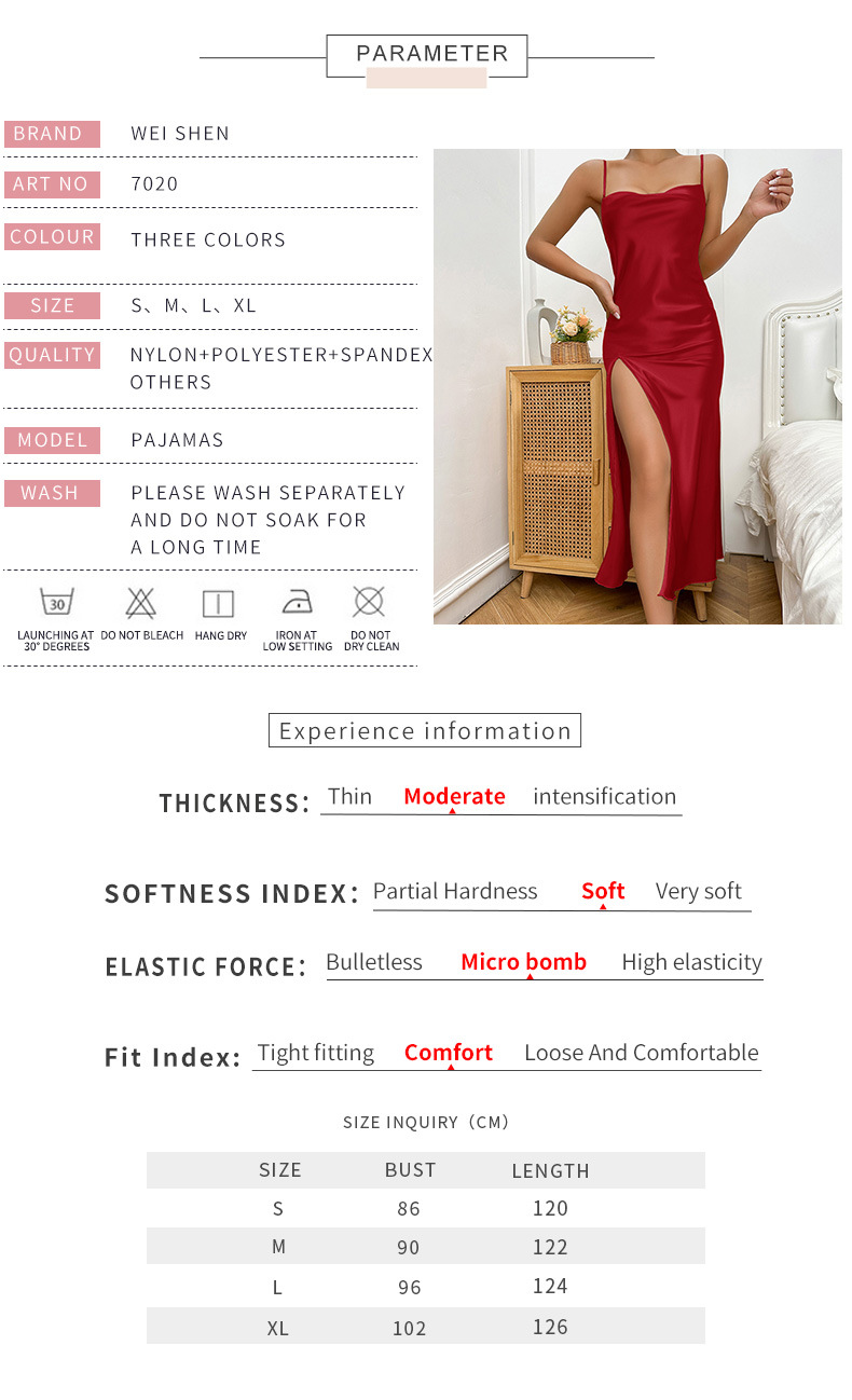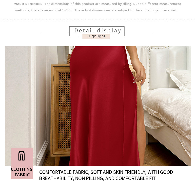 V Neck Slip Satin Nightgown With Adjustable Straps Red,S